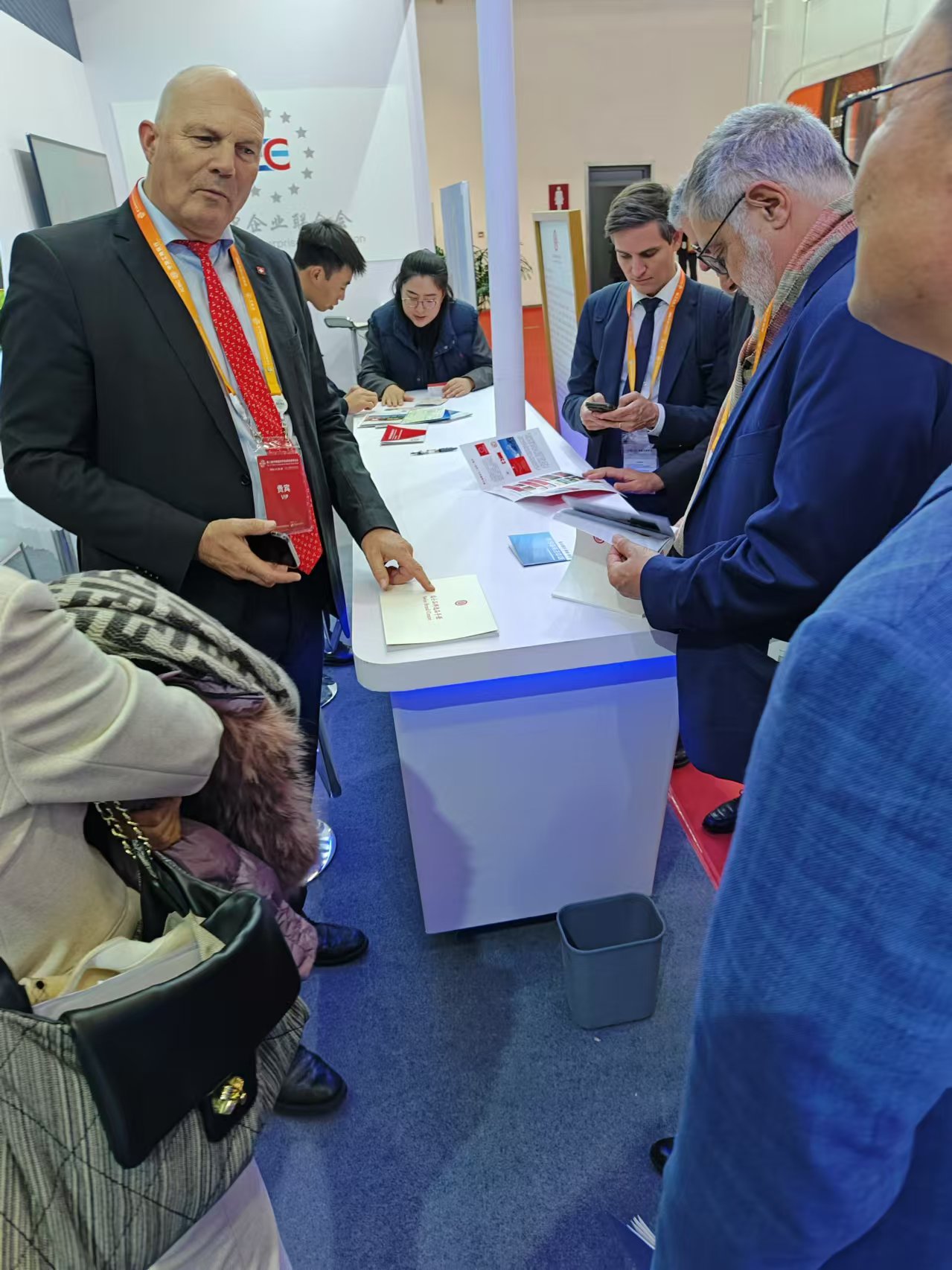 2024年11月26日上午,鏈博會(huì)開(kāi)幕會(huì)結(jié)束,瑞士議員代表團(tuán)全部到訪歐中企業(yè)聯(lián)合會(huì)在鏈博會(huì)的展廳。